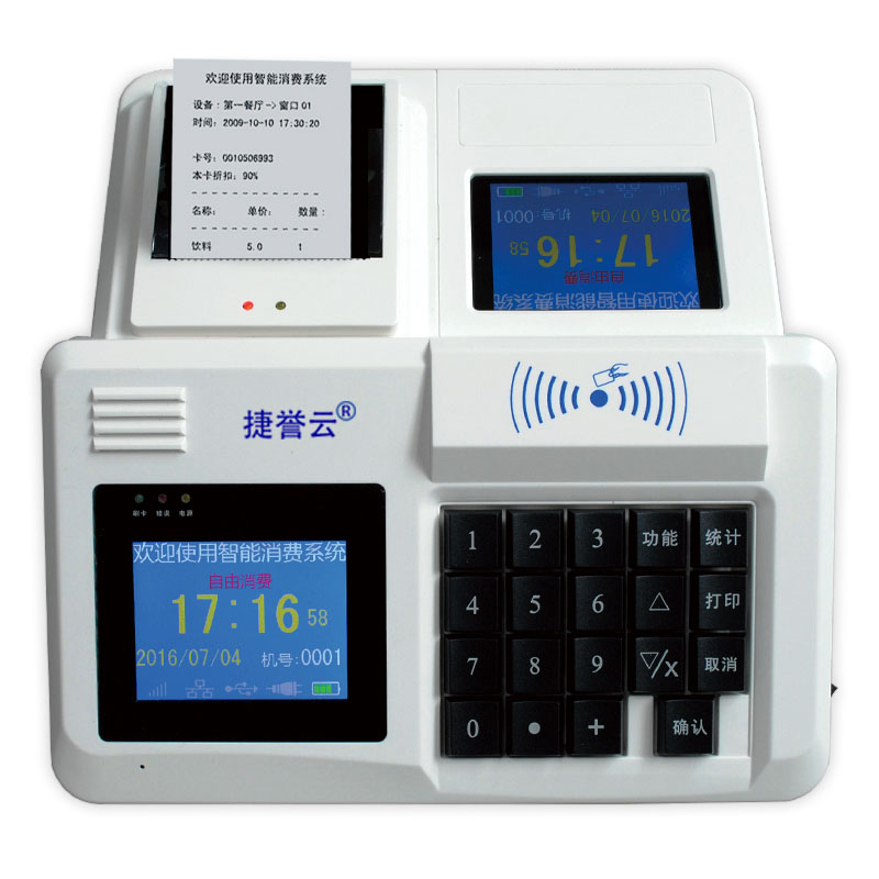 • 人臉識別消費機,刷臉+手機掃碼+刷卡